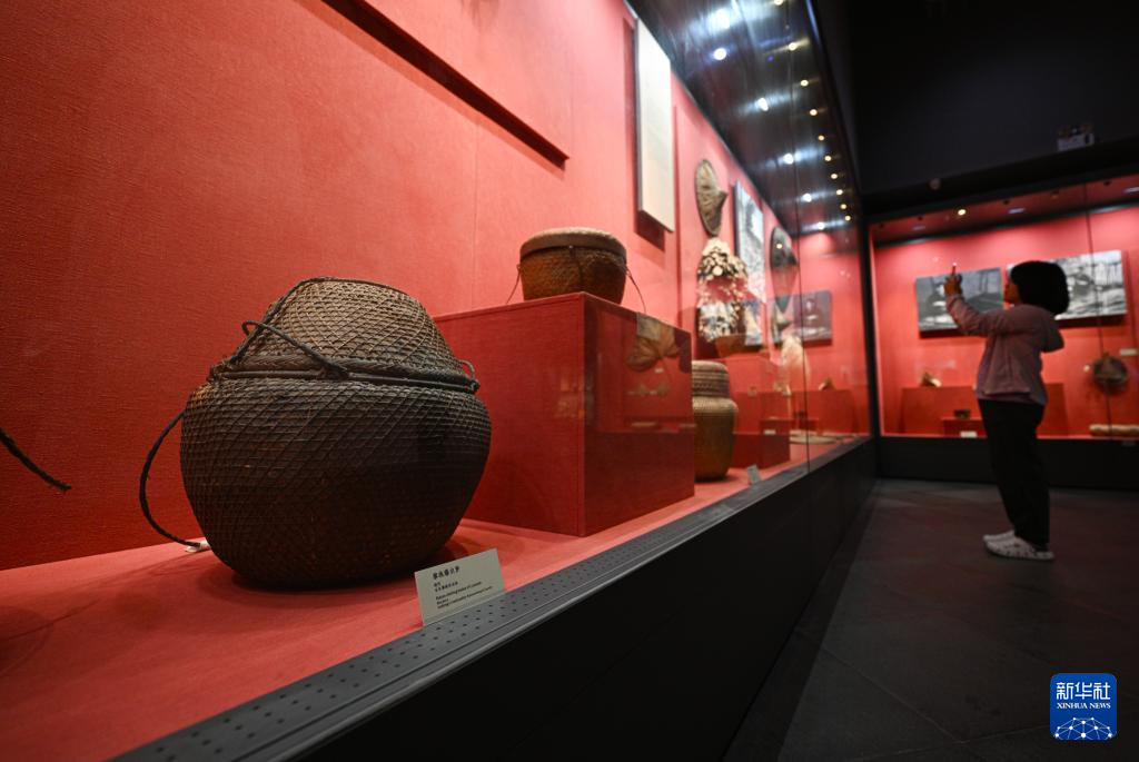 5月16日在位于海南五指山的海南省民族博物館拍攝的黎族藤衣籮。