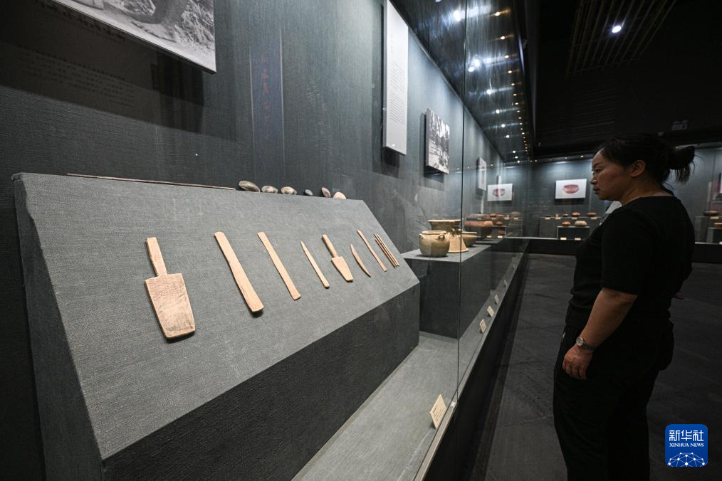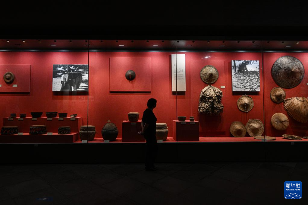5月16日,游客在位于海南五指山的海南省民族博物館觀看黎族制陶工具。