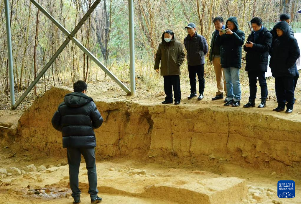業內專家在盤龍城遺址石砌建筑遺跡現場進行考察論證(2015年1月25日攝)。新華社記者 喻珮 攝