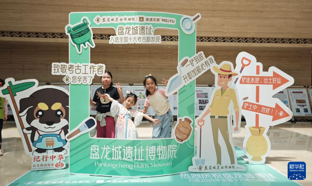 觀眾在位于湖北省武漢市的盤龍城遺址博物院參觀打卡(2025年5月1日攝)。新華社記者 喻珮 攝