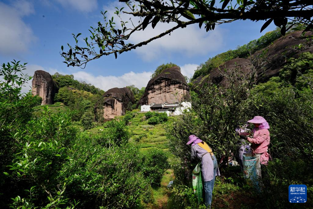5月6日,茶農在武夷山馬頭巖一處茶園采摘茶葉。