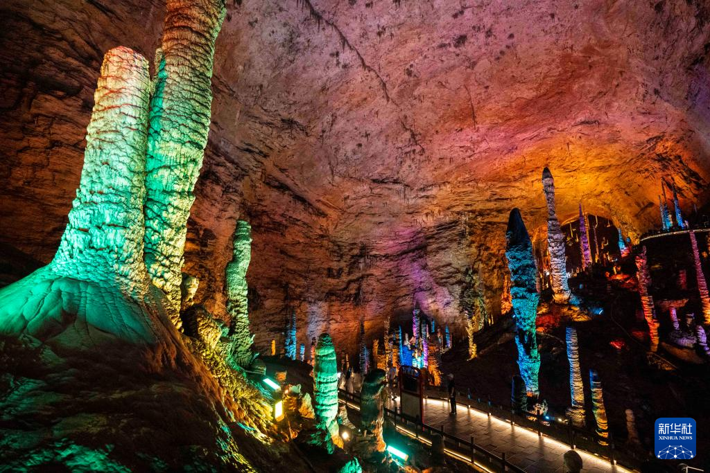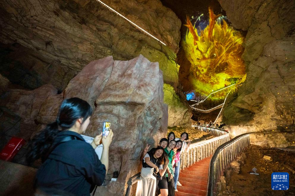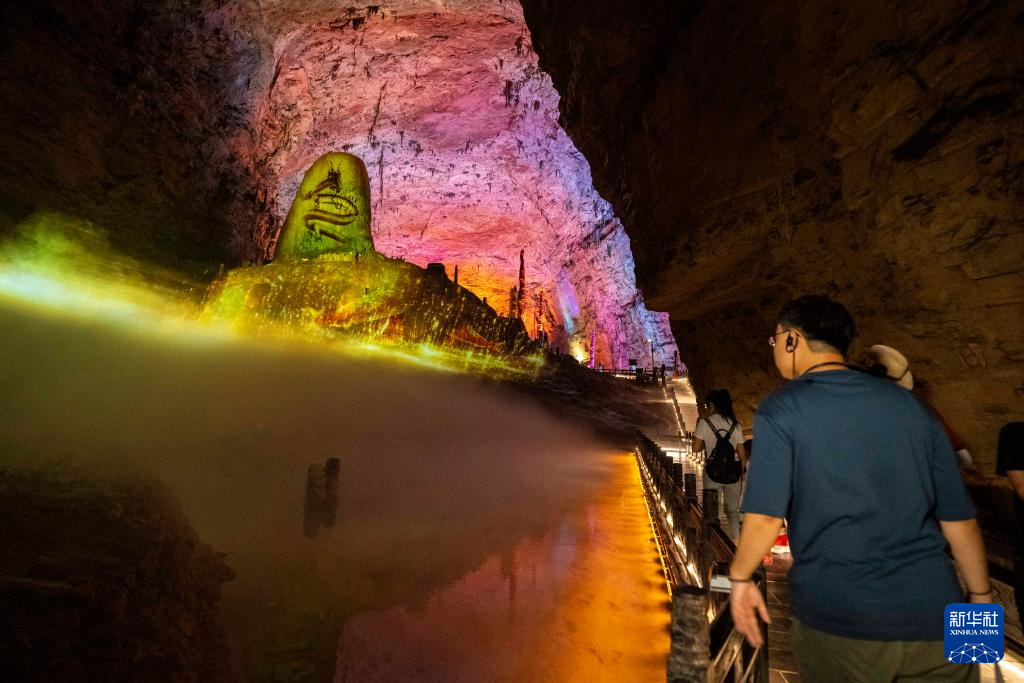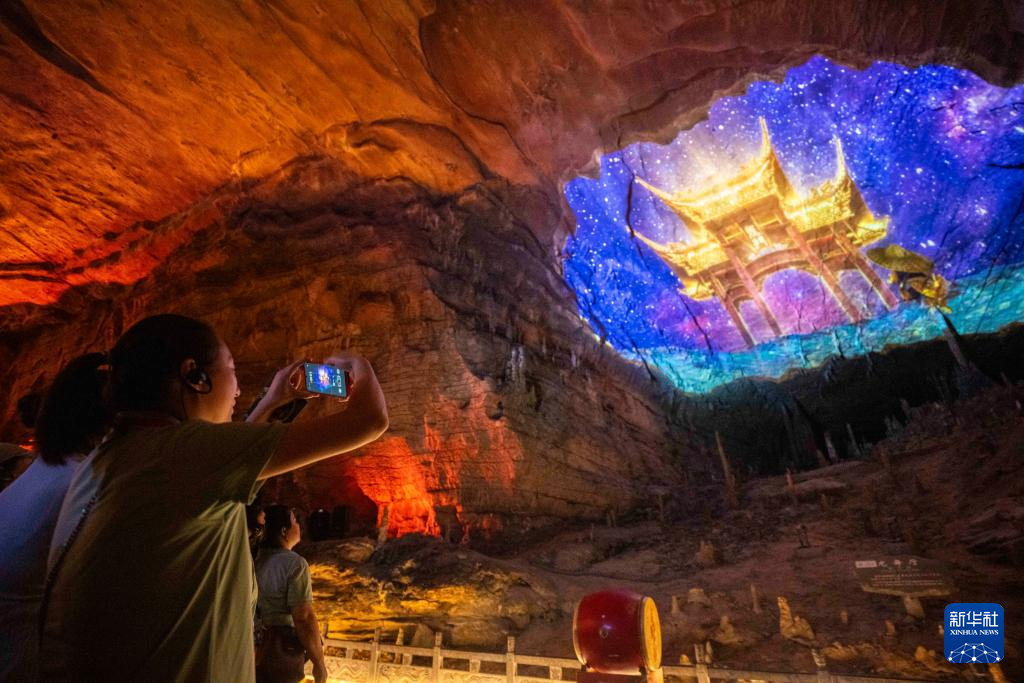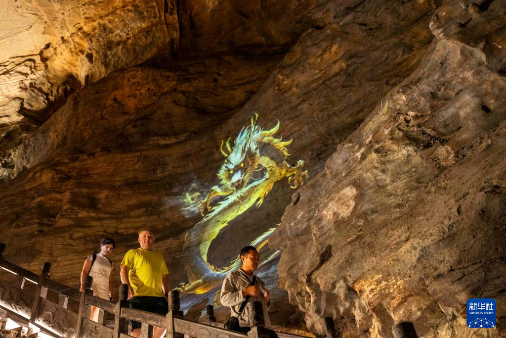 當日,湖南張家界黃龍洞景區燈光升級工程正式竣工亮相。此次燈光升級改造以“洞天福地”為主題,以“大鯢化龍”故事為引線,把天然石壁當成巨幕,將光影科技、神話故事和自然景色融為一體,為游客們打造了一場關于光影、神話與自然的奇幻之旅。