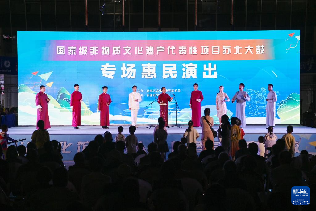 蘇北大鼓扎根于江蘇宿遷方言土壤,以“一面鼓、一副板”的配置,構建起獨特的說唱藝術世界。這種俗稱“唱大書”的曲藝形式,憑借“隨地可演”的靈活性,融入蘇北百姓的生活血脈。表演者一人分飾多角,左手執板、右手擊鼓,將民間傳說與時代故事化作聲情并茂的說唱,成為地方文化的鮮活印記。