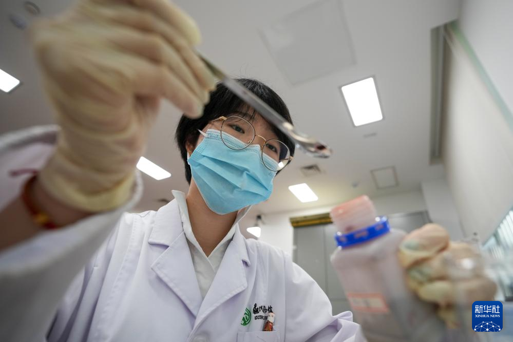 陳琰璐對文物補料進行染色(5月18日攝)。