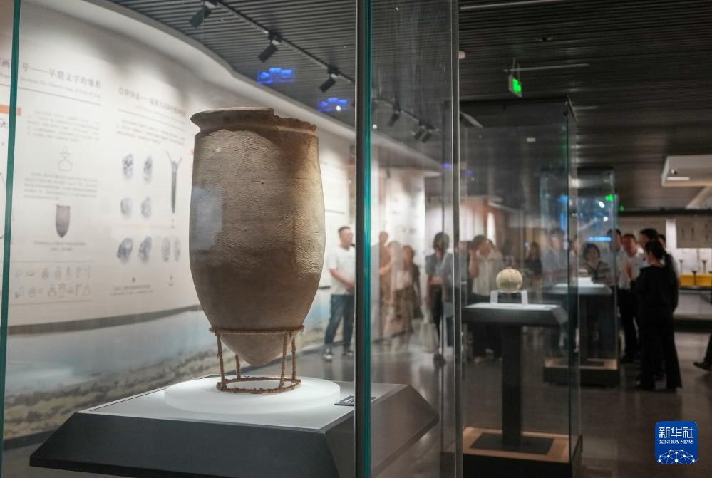 這是5月20日在大汶口遺址博物館拍攝的刻花陶罐。