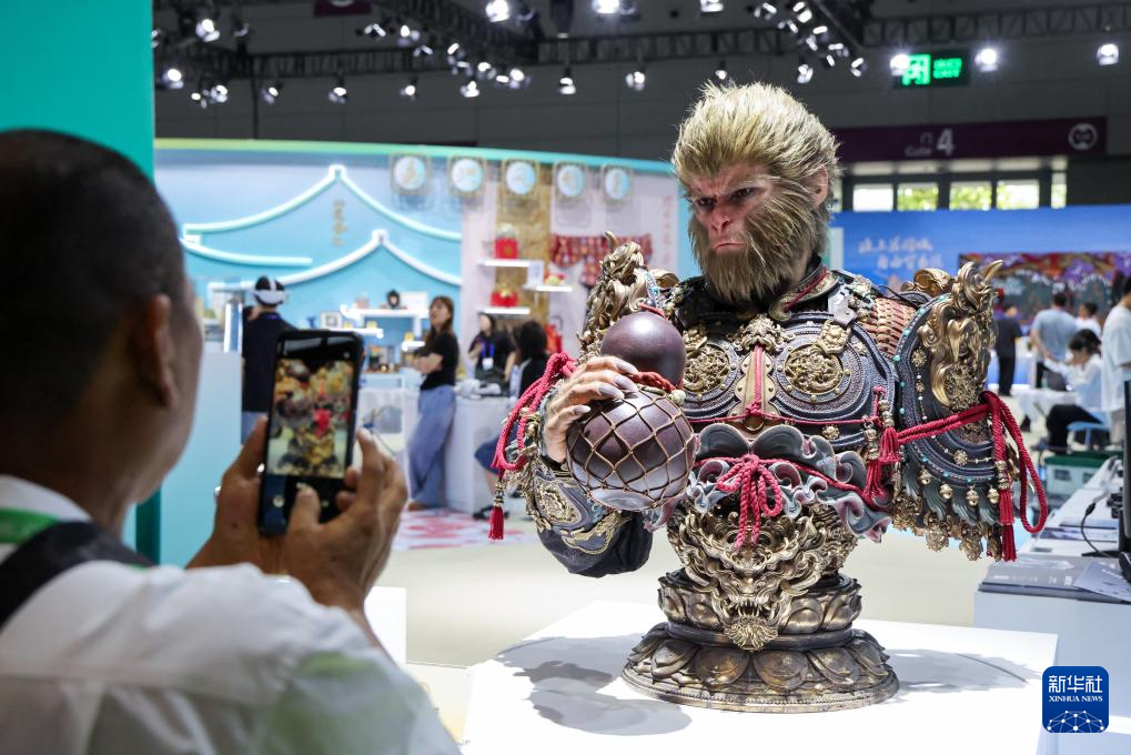5月23日,觀眾在文博會上拍攝黑神話悟空半身像。