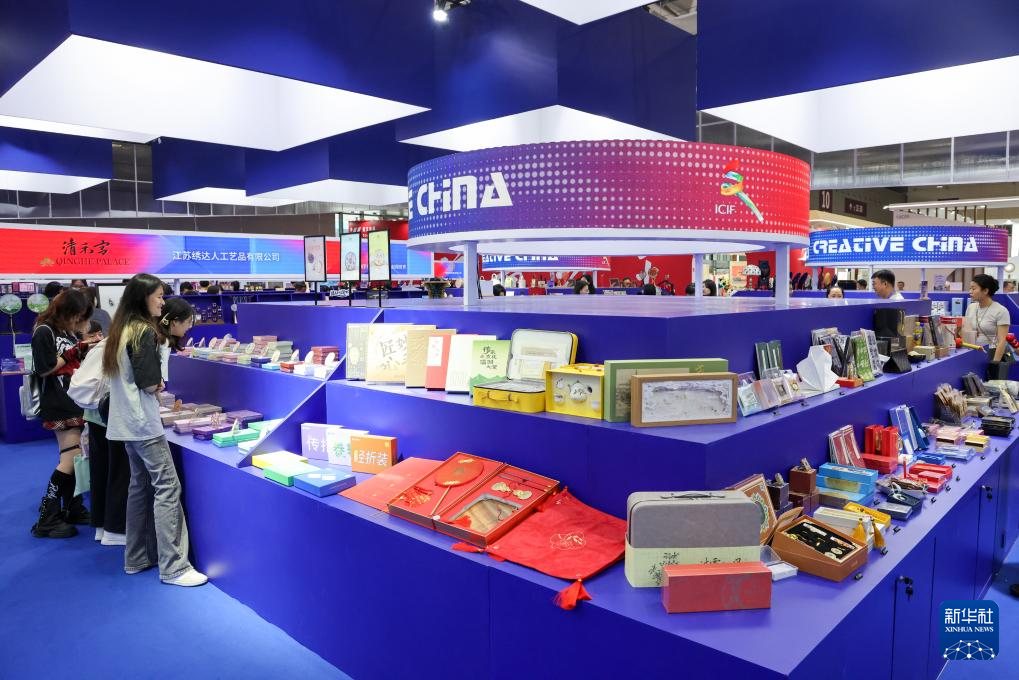 5月23日,人們在文博會“文創中國”展區選購文創產品。