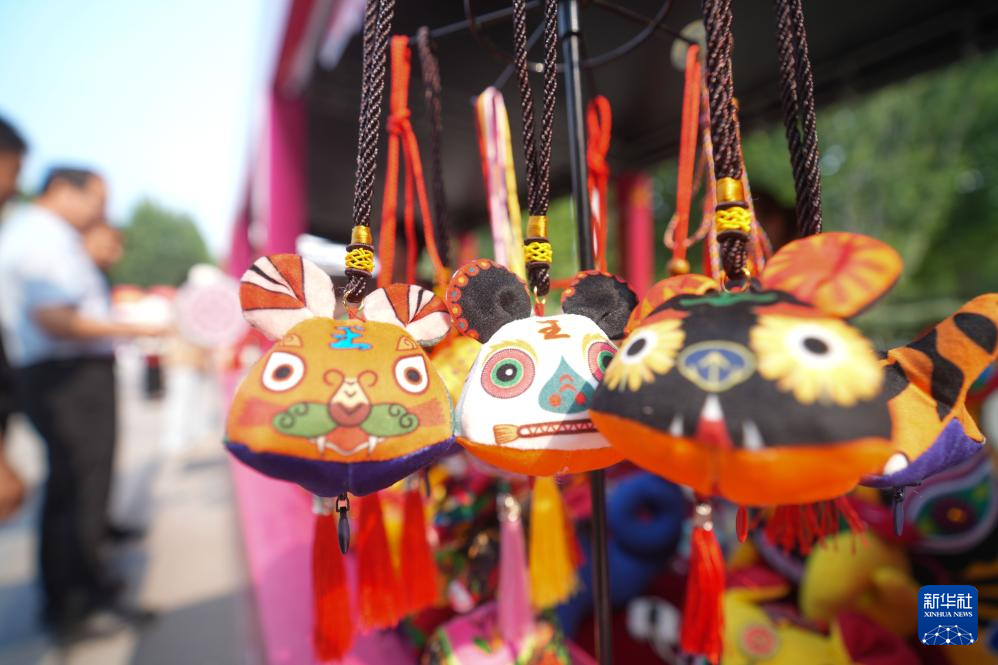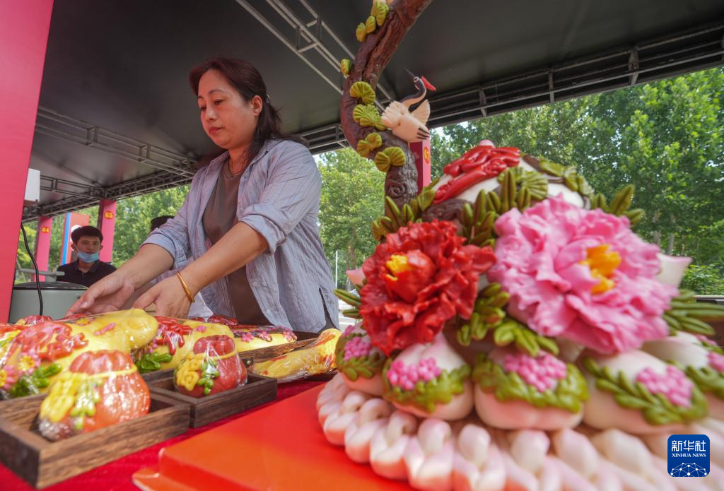 6月28日,“黃河大集”田園豐收市集的一位攤主在整理花饃。