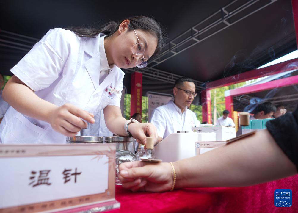 6月28日,醫生在“黃河大集”中醫養生市集上為顧客艾灸。