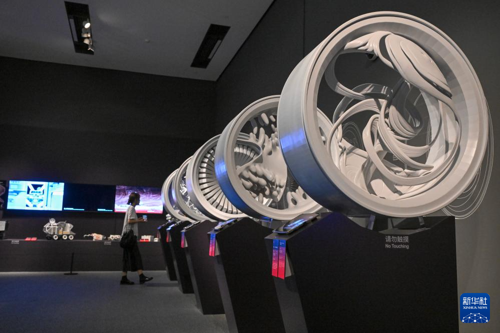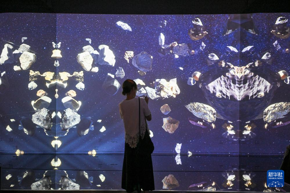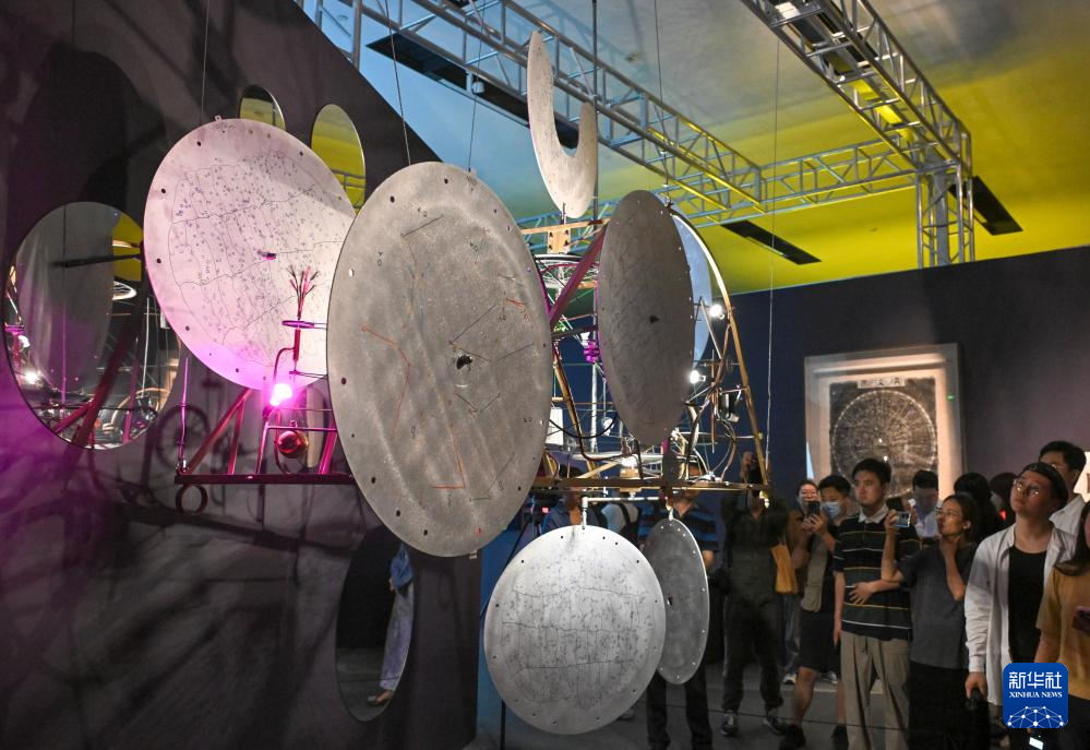 7月2日,觀眾參觀宇宙碰撞交互裝置作品。