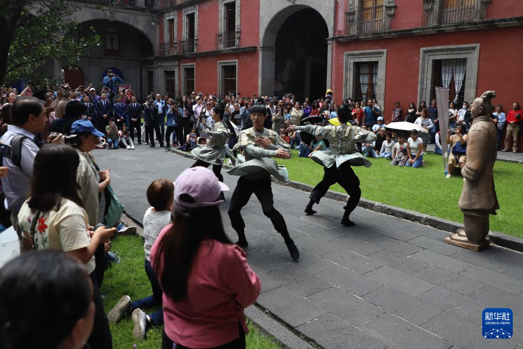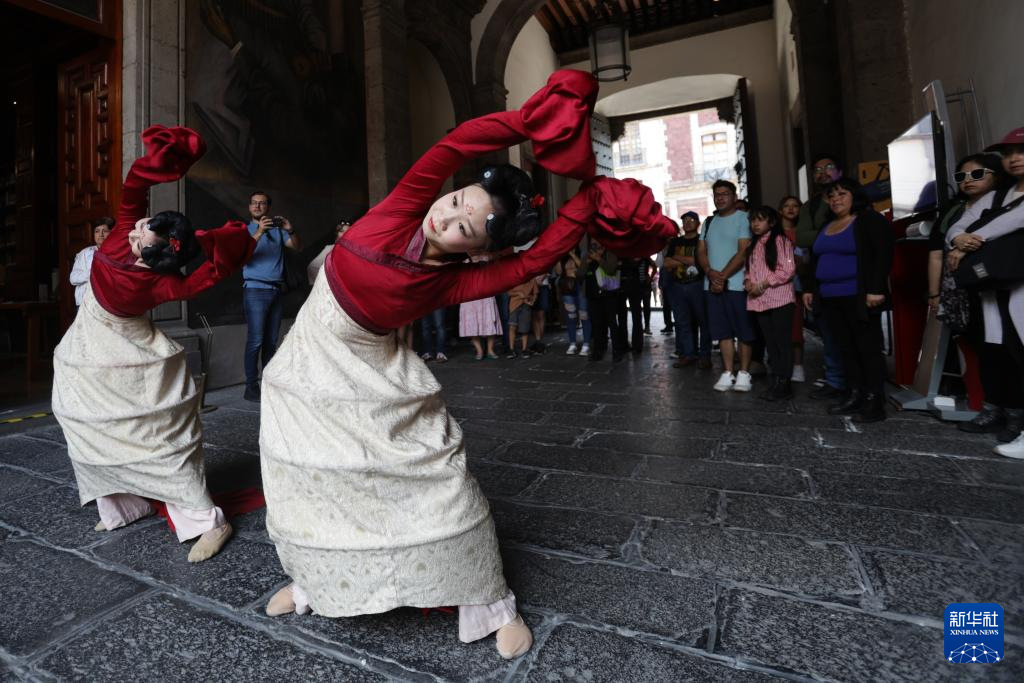 7月5日,在墨西哥首都墨西哥城,當地民眾觀看中國演員表演舞蹈。