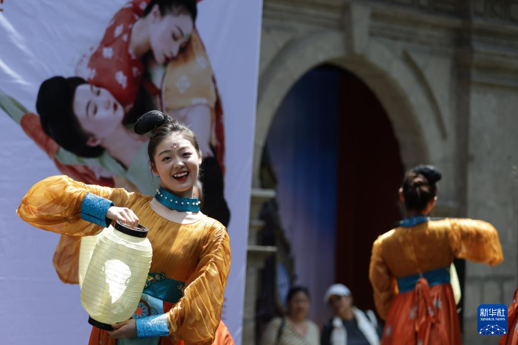 7月5日,在墨西哥首都墨西哥城,中國演員表演舞蹈。