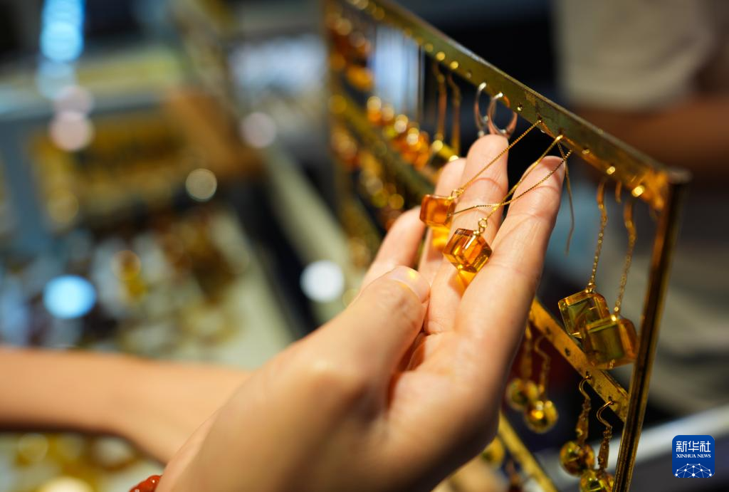 這是7月10日在昆明石博會上拍攝的琥珀飾品。