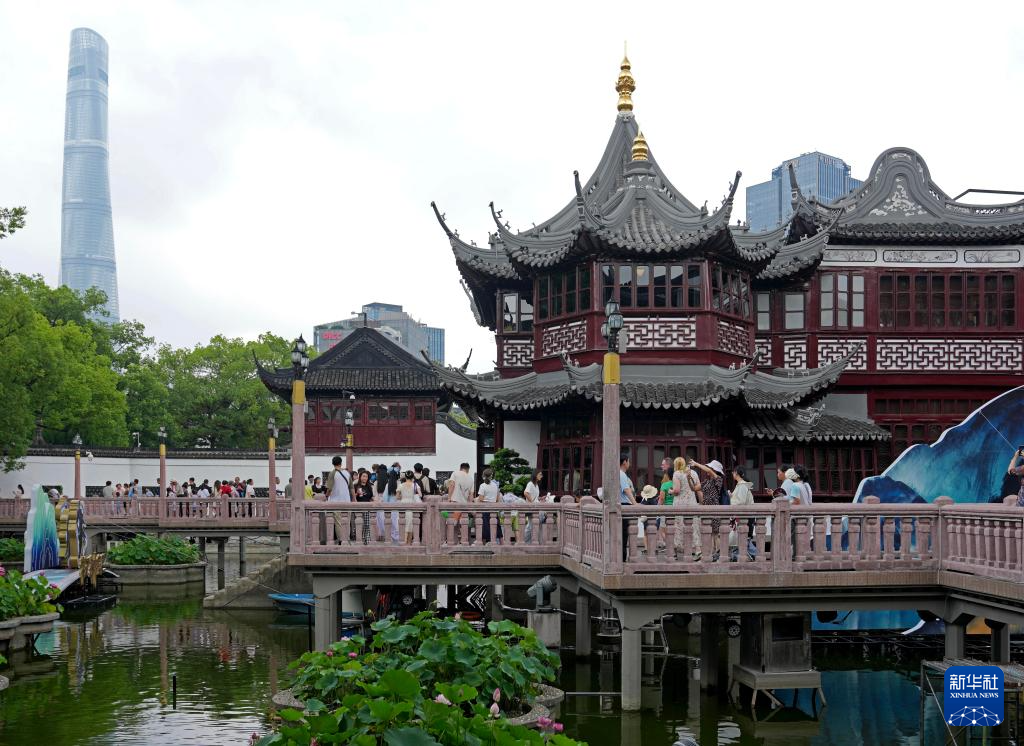 7月10日在豫園九曲橋邊拍攝的重新開放的湖心亭。