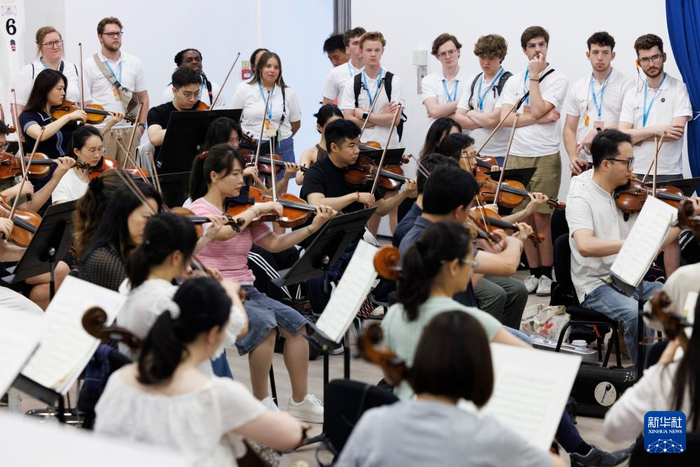 7月14日,在中國交響樂團,猶他谷大學合唱團、河北省正定中學合唱團等團員在觀看樂團排練。