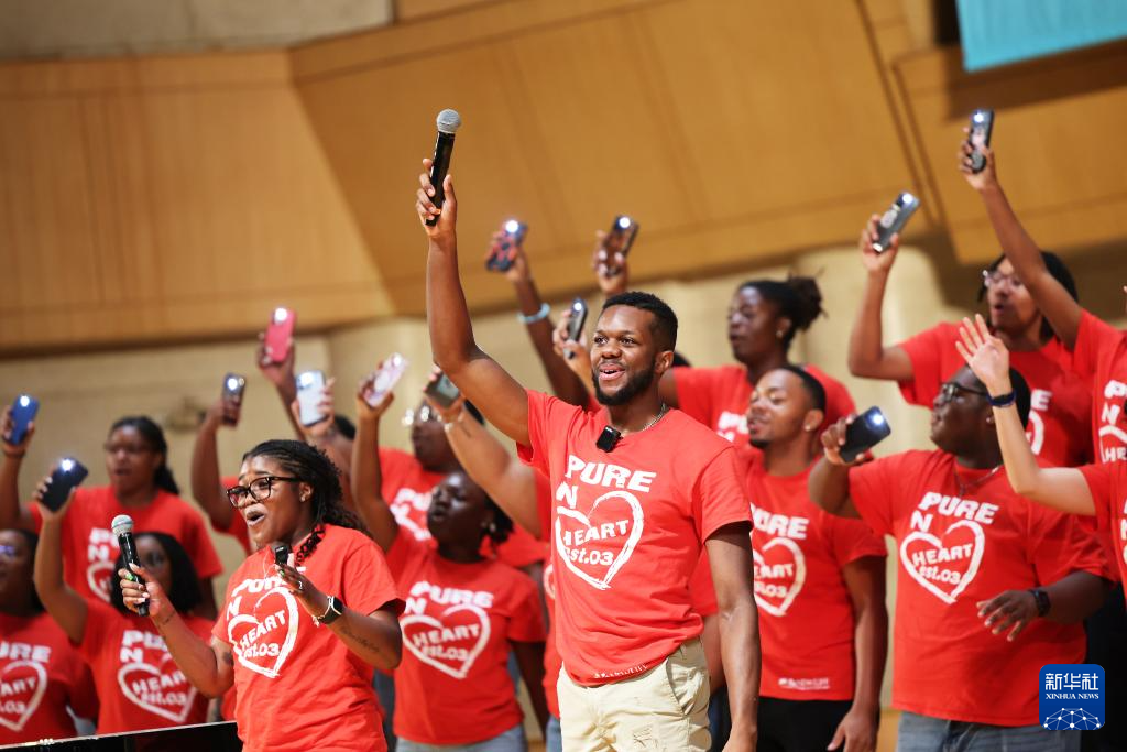 7月14日,在中國交響樂團,猶他谷大學合唱團在演唱。