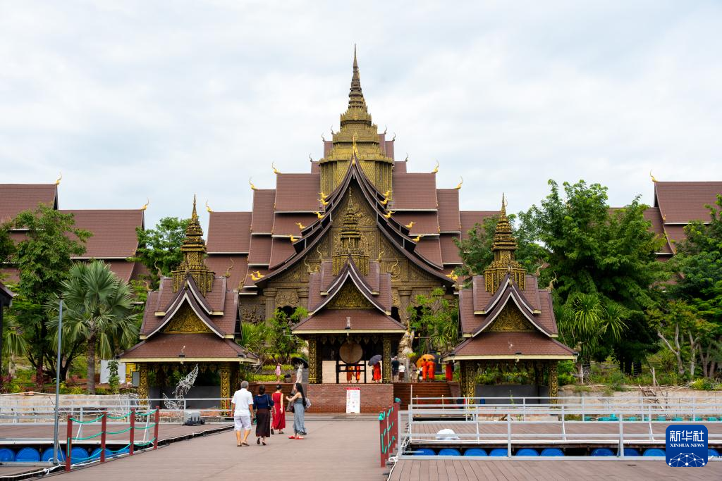 7月13日,游客在位于老撾首都萬象的老撾藝術博物館參觀留影。