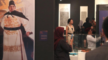 7月14日,游客在大汶口遺址博物館內參觀先民生活場景復原模型。