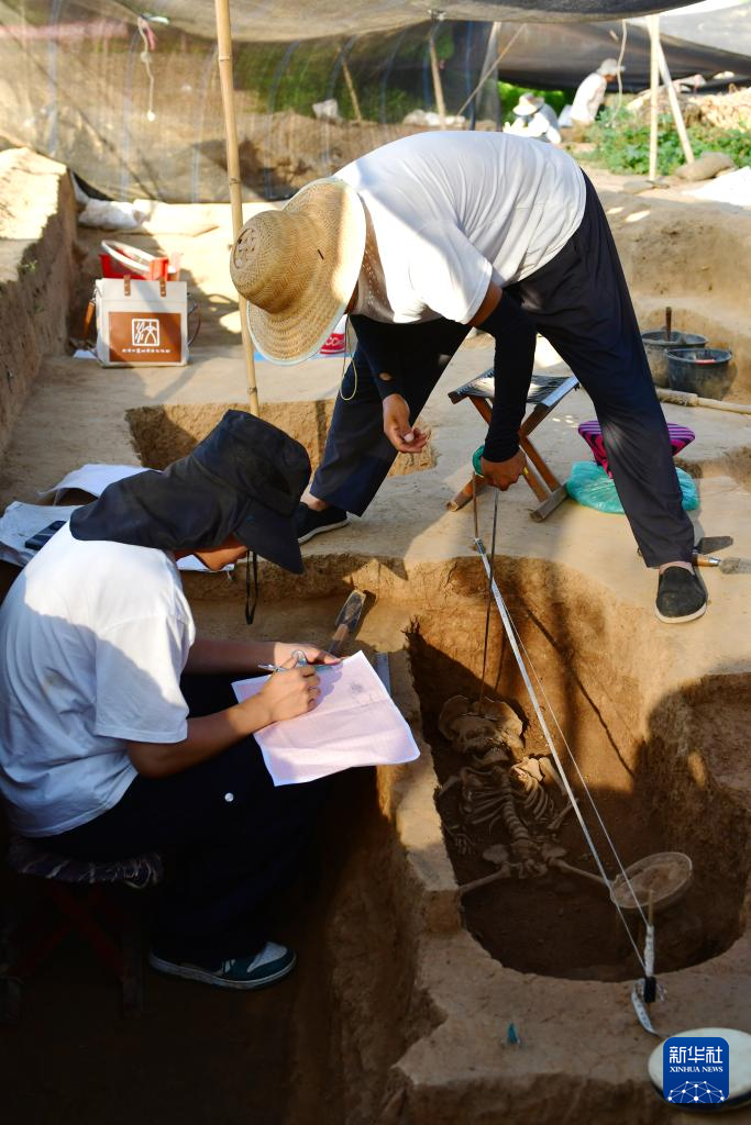 7月14日拍攝的大汶口國家考古遺址公園遺址發掘現場(無人機照片)。
