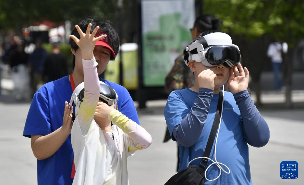 游人利用AR設備參觀798藝術園區(5月4日攝)。