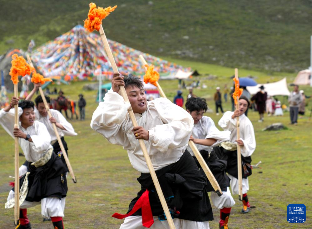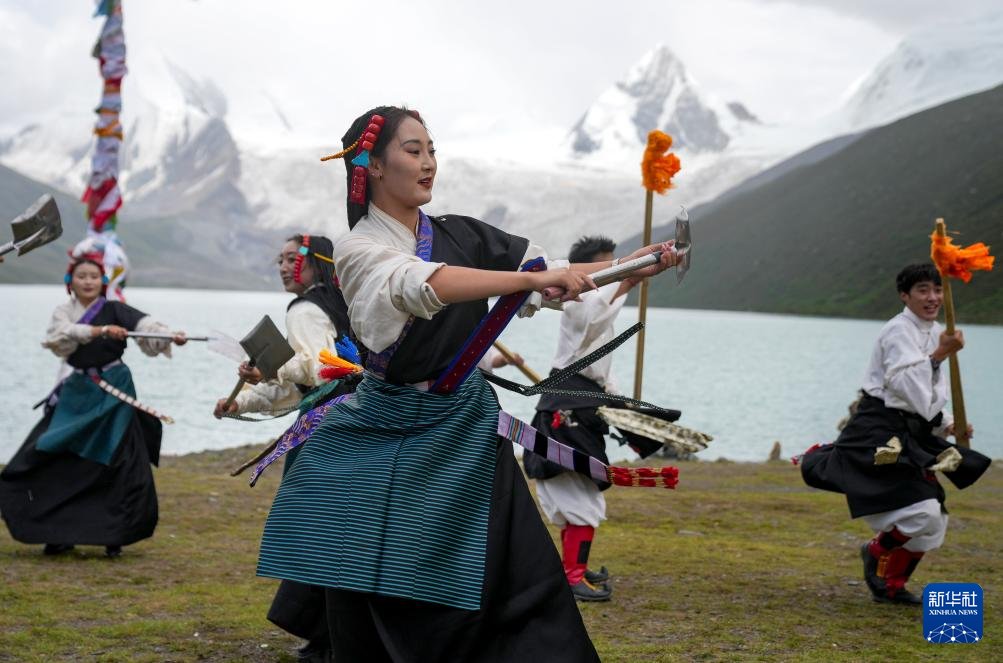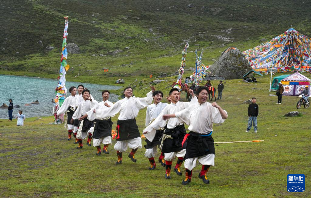 西藏那曲市比如縣藝術團的演員在薩普雪山景區為游客表演國家級非物質文化遺產舞蹈“達布阿諧”(7月19日攝)。這是該藝術團今年在景區開展的第6場非遺展演活動。