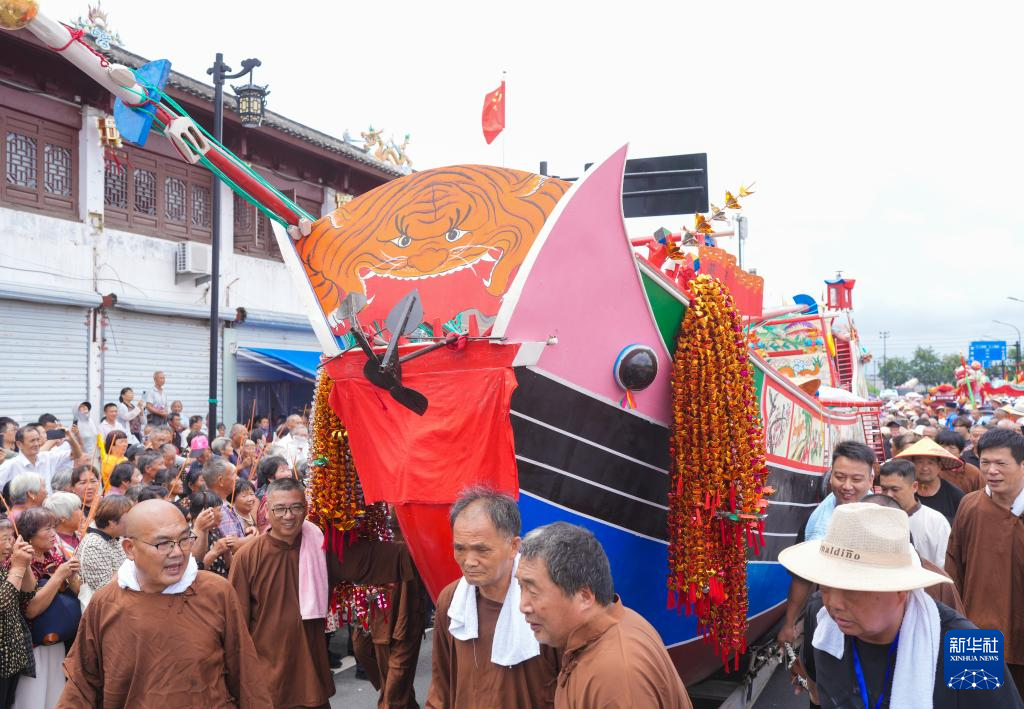 當日是大暑節氣,浙江省臺州市沿海群眾在椒江區葭沚街道參加傳統的“送大暑船”儀式。“大暑船”按三桅帆船樣式建造,通身彩繪。人們抬著“大暑船”沿街巡游,隨后推入江中由漁船牽引出海并點燃。“送大暑船”2021年被列入第五批國家級非物質文化遺產代表性項目名錄。