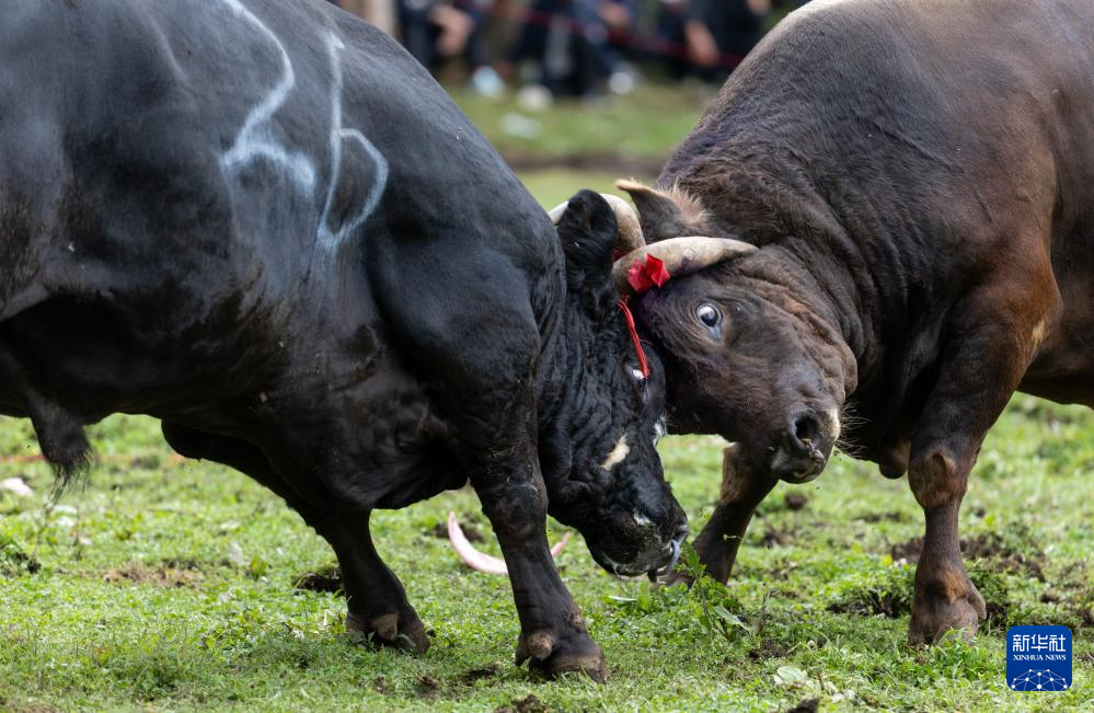 在布拖縣龍潭鎮包谷坪火把場舉行的斗牛比賽(7月21日攝)。