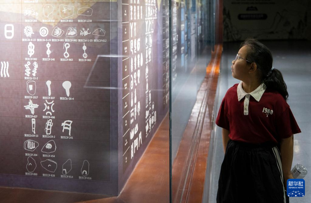 7月23日,工作人員在銀川世界巖畫館研究室研究賀蘭山巖畫數字拓片。