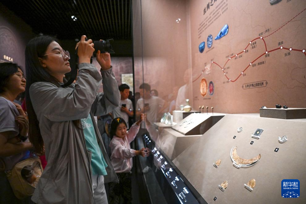 7月30日,游客在內蒙古呼和浩特市內蒙古博物院新館拍攝展品。