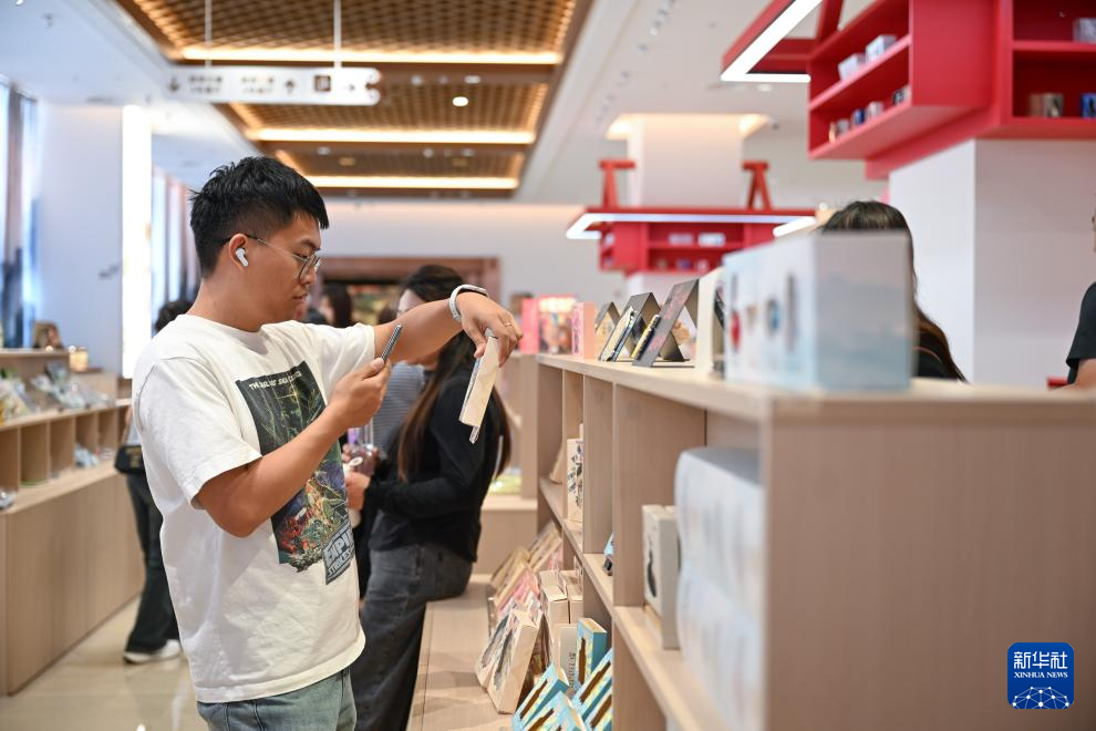 7月30日,游客在內蒙古呼和浩特市內蒙古博物院新館選購文創產品。