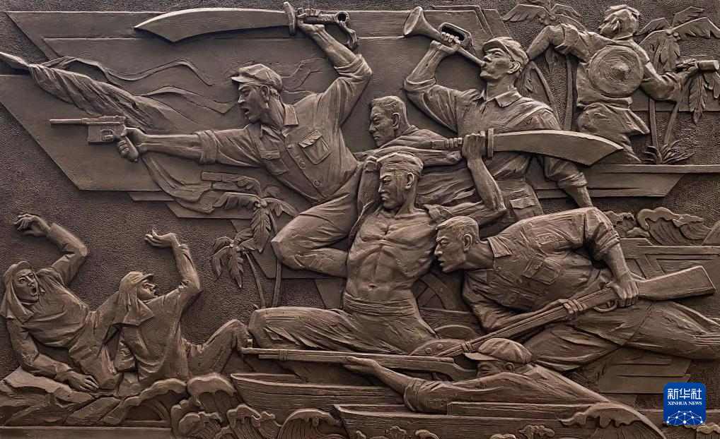 這是解放軍文工團雕塑創作員郎鉞創作的,以東江縱隊抗戰為背景的浮雕《南粵烽火 衛士先驅》。