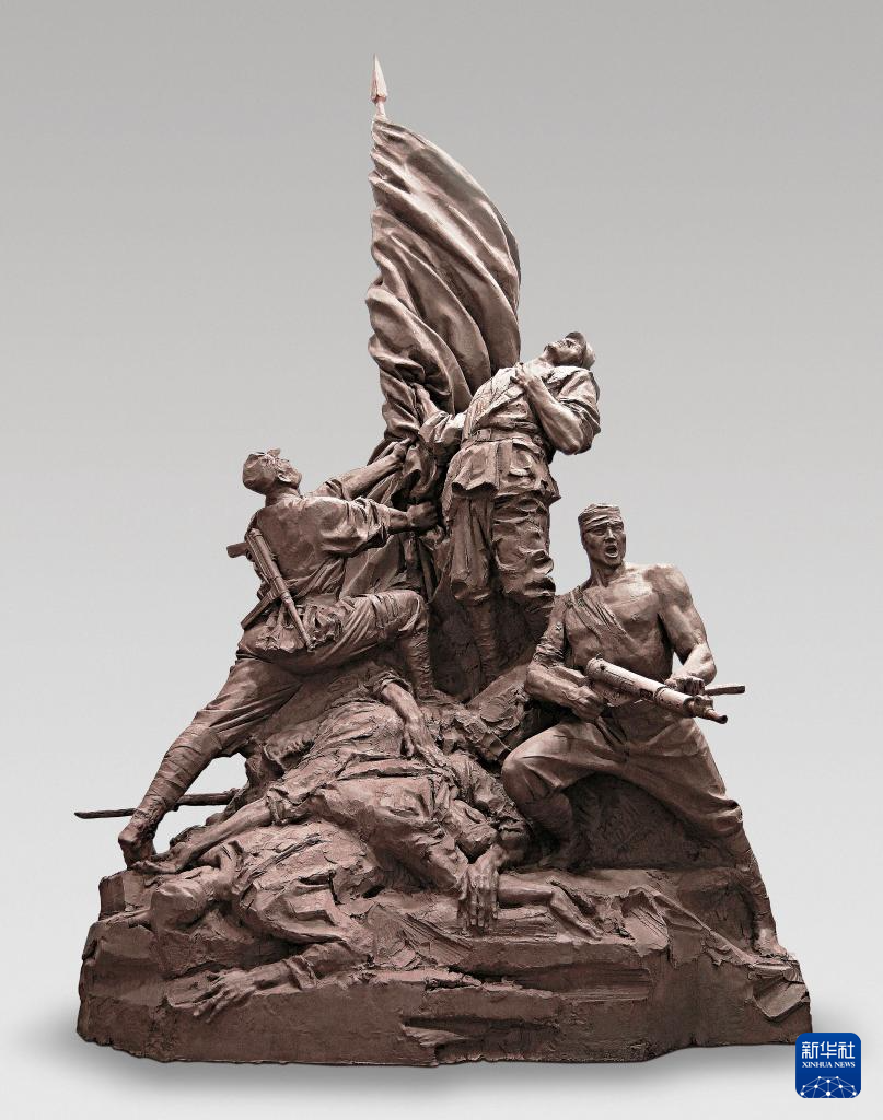 這是中國人民革命軍事博物館創作員談強創作的雕塑《英魂碧血染山河》。