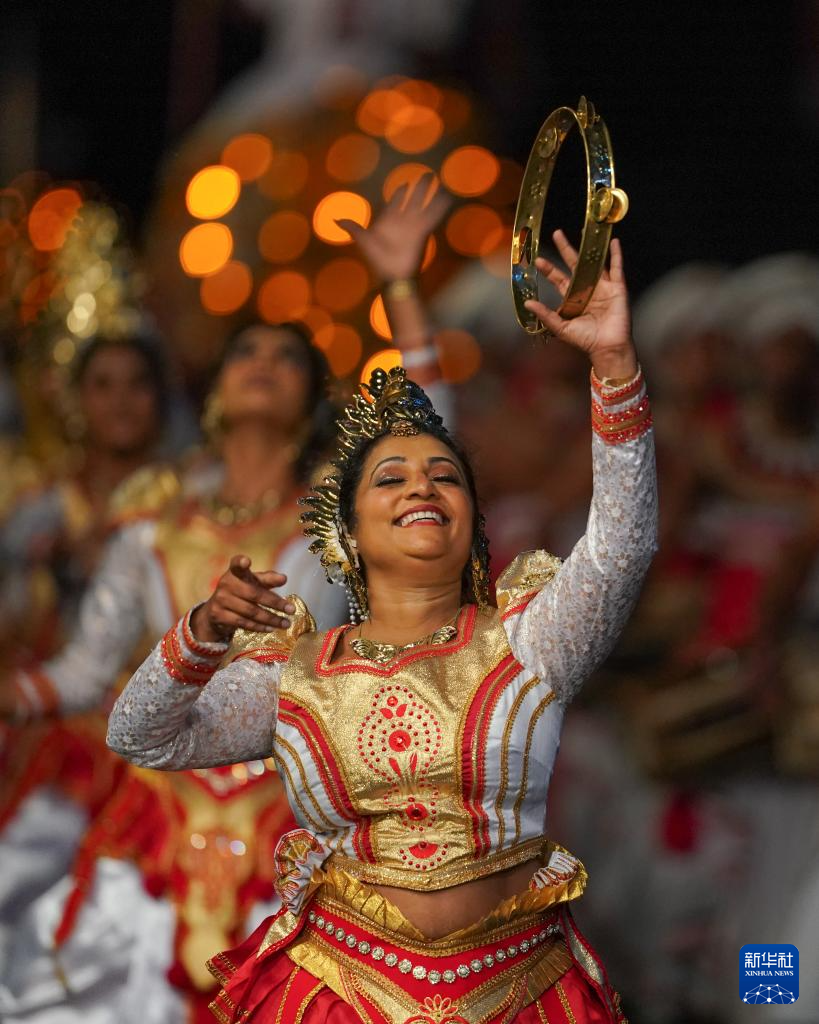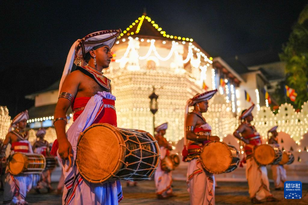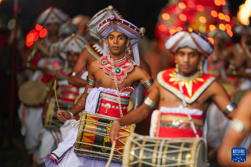 8月4日,在斯里蘭卡中部城市康提,演員在佛牙節游行活動上表演。