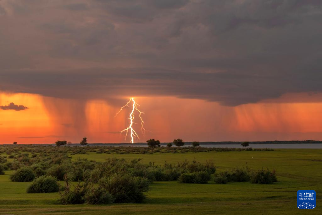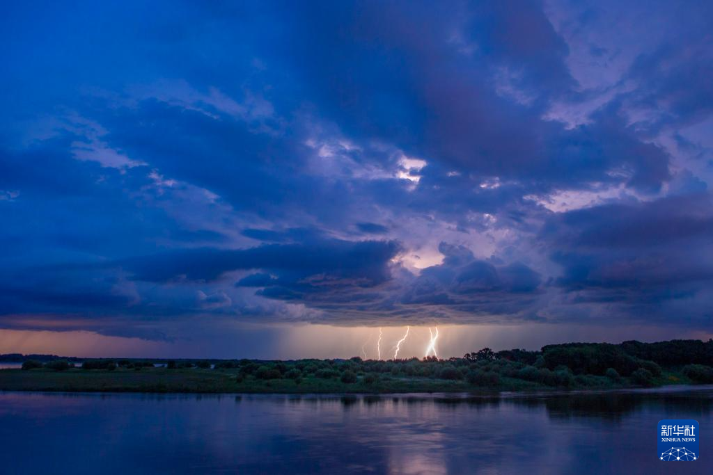 7月21日在黑龍江省大慶市杜爾伯特蒙古族自治縣拍攝的雷暴閃電。