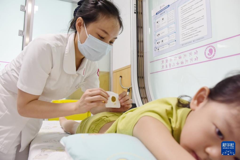 7月20日,在位于云南省蒙自市的紅河州婦幼保健院,醫護人員為一名小朋友貼“三伏貼”。以三伏貼為代表的“冬病夏治”是傳統中醫特色療法。