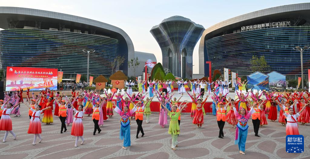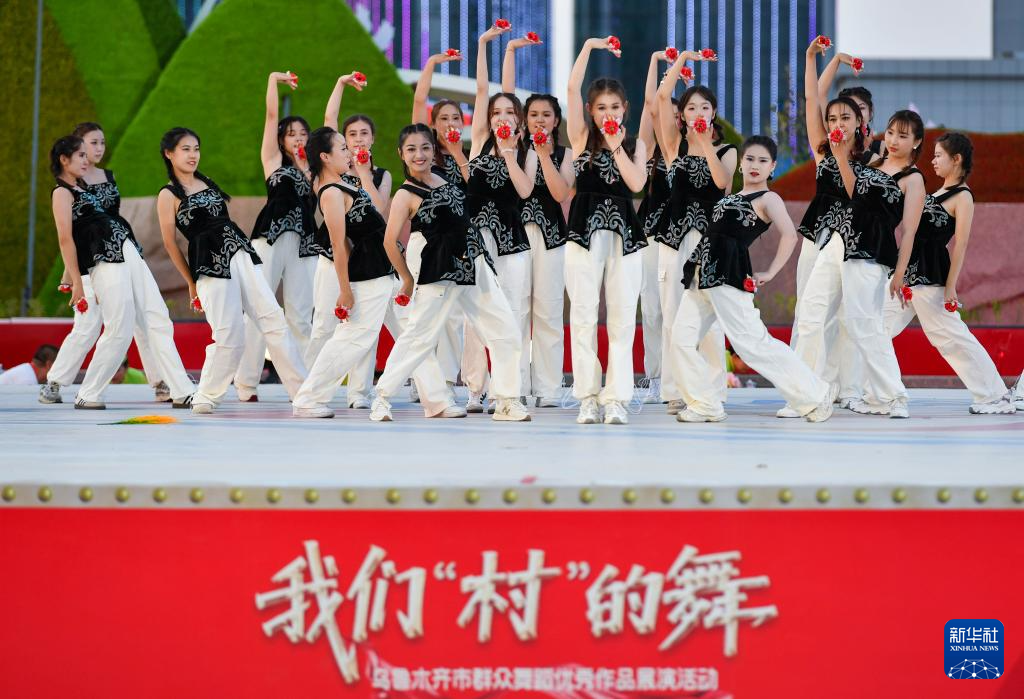 烏魯木齊市達坂城區舞蹈隊在“我們‘村’的舞”烏魯木齊市群眾舞蹈展演活動上表演舞蹈(7月28日攝)。新華社記者 胡虎虎 攝