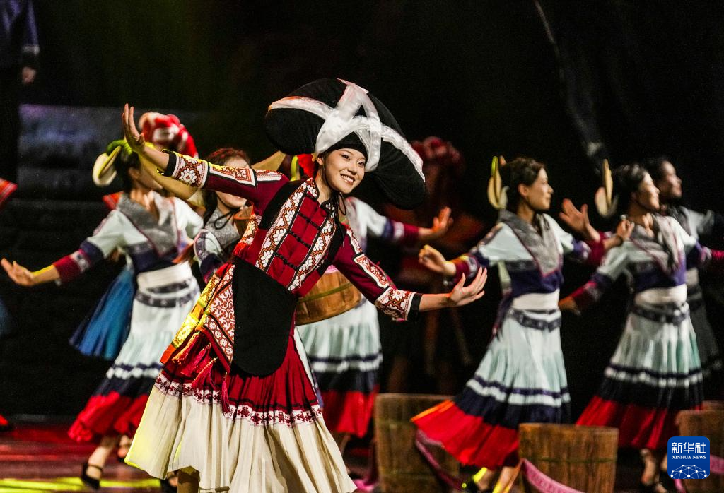 8月12日晚,情景歌舞劇《路,在云端》在貴陽上演。該劇以貴州省交通發展的歷史巨變為切入點,將貴州多彩的少數民族風情和秀美的山川河谷作為創作素材,深情講述世代生活于黔貴大地上的各族兒女,在黨的領導下鋪就通向幸福生活康莊大道的動人故事。
