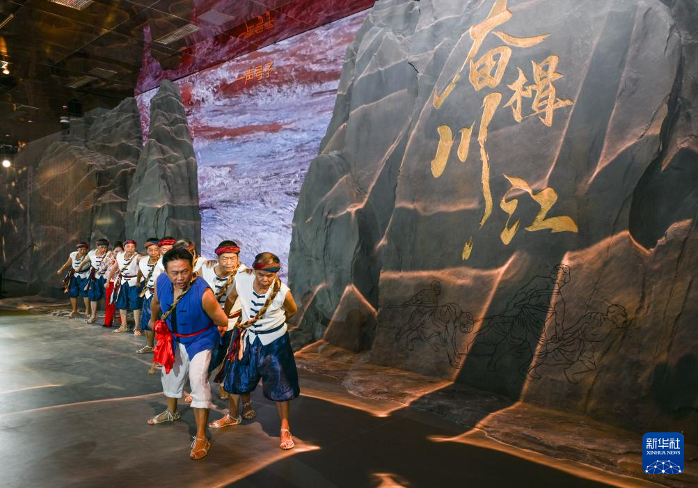 8月15日,演員在川江航運文化園開園儀式上表演歌舞《川江號子》。