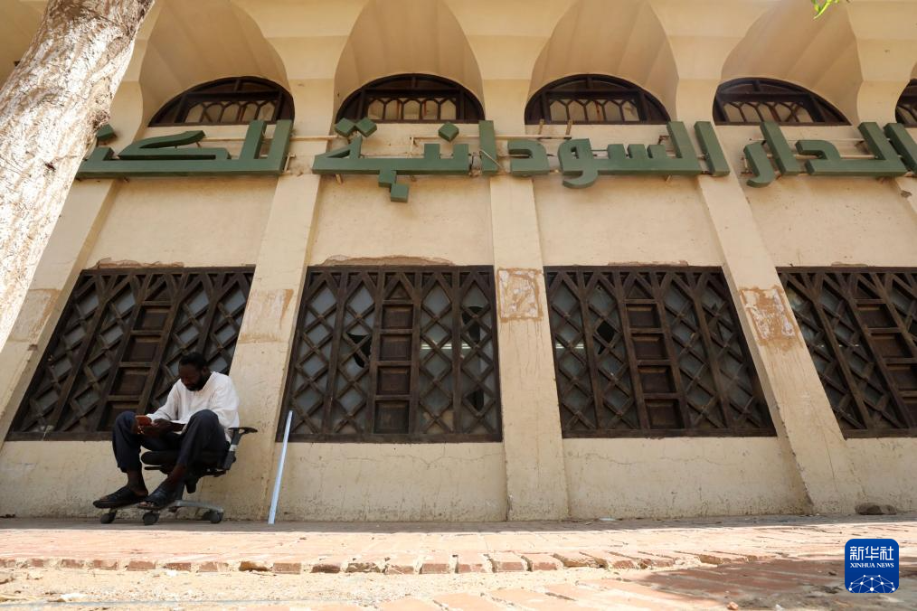 8月17日,一名男子坐在蘇丹首都喀土穆市中心的“蘇丹書屋”前。