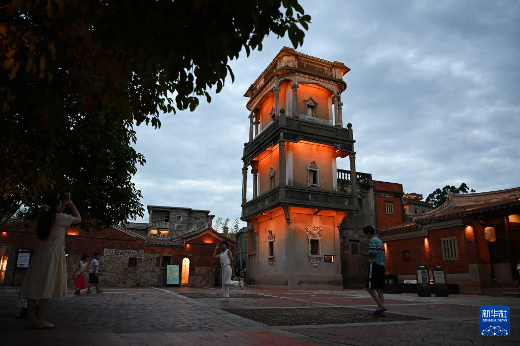 8月19日,人們在福建晉江梧林村的槍樓游玩。