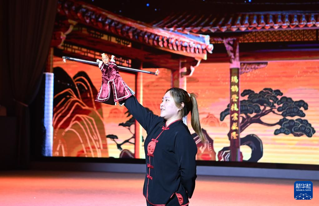 8月19日,在福建晉江梧林村,演員在融合情景劇《僑批往事》中進行掌中木偶戲表演。