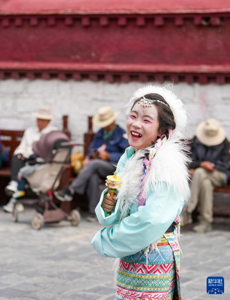 8月19日,游客在拉薩老城區身著藏裝旅拍。