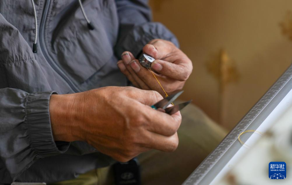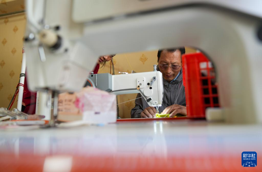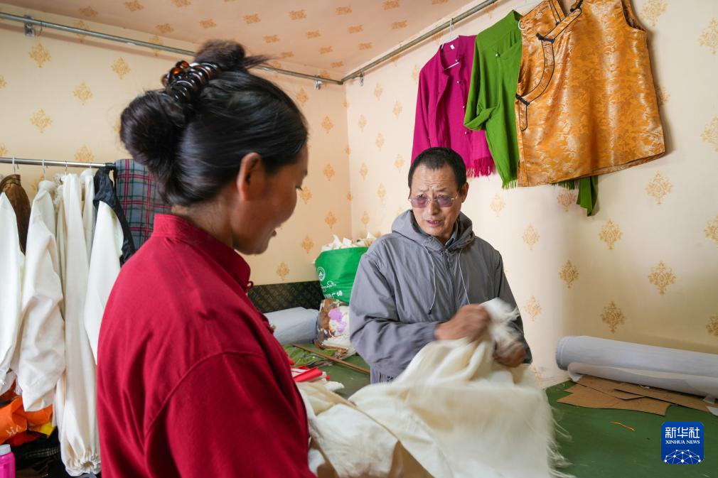 洛桑麥朗來到畢業學生開設的店鋪,現場示范制衣過程中的細節(8月15日攝)。