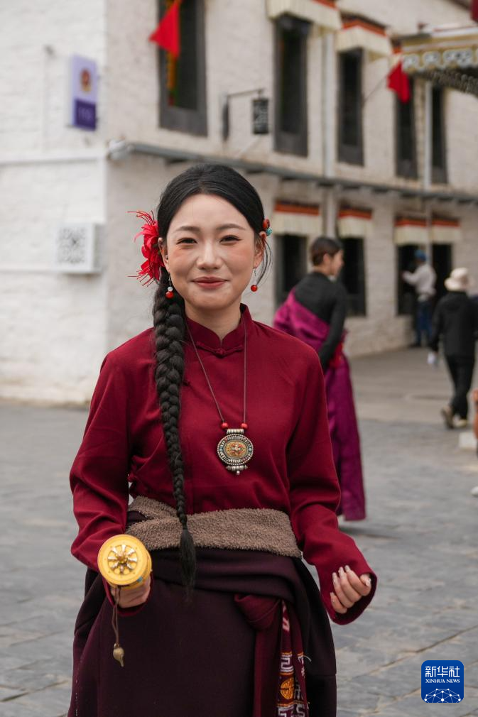 如今,洛桑麥朗培養的百余名學生已如格桑花般綻放在高原各地,在他的鼓勵下,年輕的設計師們將非遺技藝與現代審美交融。走在拉薩街頭,來自天南海北的游客身著華麗的藏裝,和當地老人身上的傳統藏裝相映成趣,形成了一道靚麗的風景。