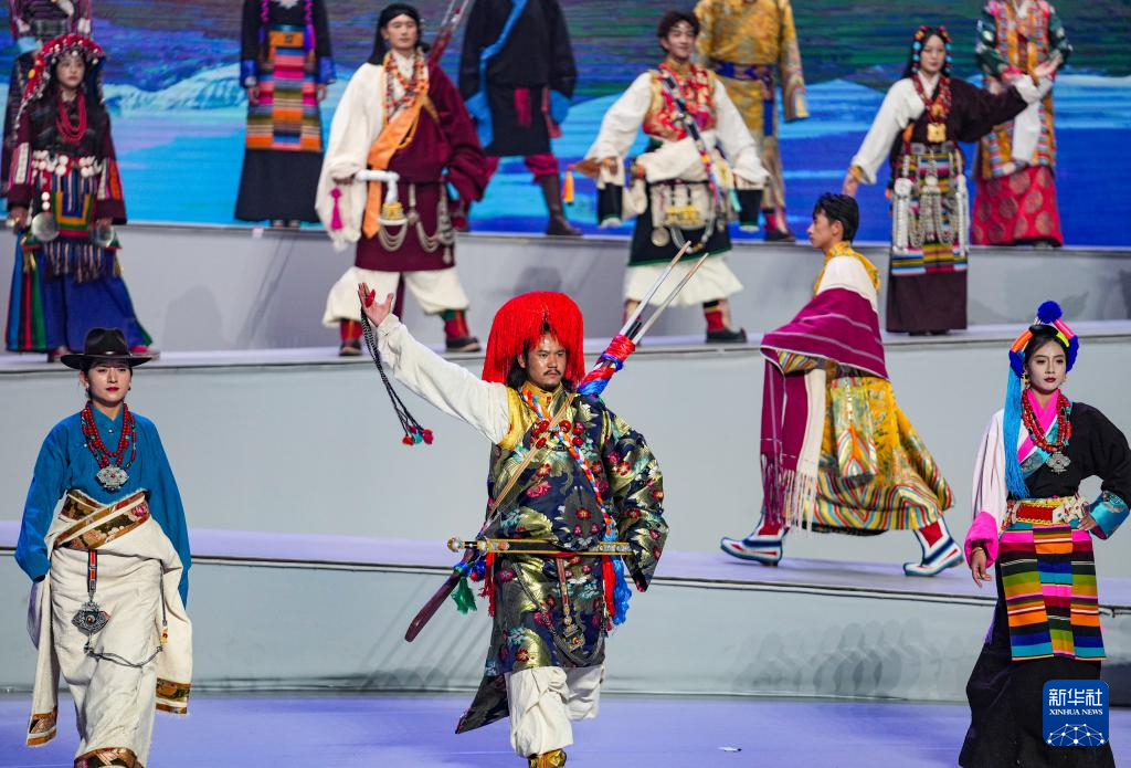 模特在首屆西藏“衣脈相承”服飾文化周走秀現場展示傳統服飾(2025年1月5日攝)。