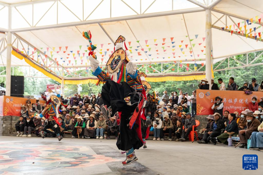 這是8月24日在拉薩宗角祿康公園拍攝的藏戲展演現場。