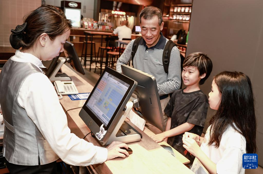 8月25日,在武漢市百麗宮影城,家長帶著孩子購買《浪浪山小妖怪》電影票。