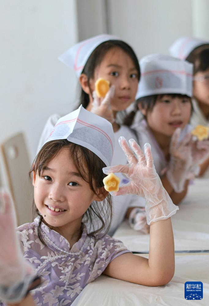 8月26日,在山東省青島市城陽區河套街道西河套社區,小朋友學做七夕巧果。