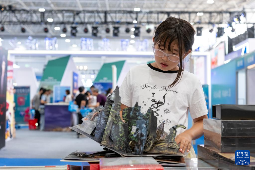 8月31日,讀者在內蒙古呼和浩特市2025北疆書展閱讀立體書。