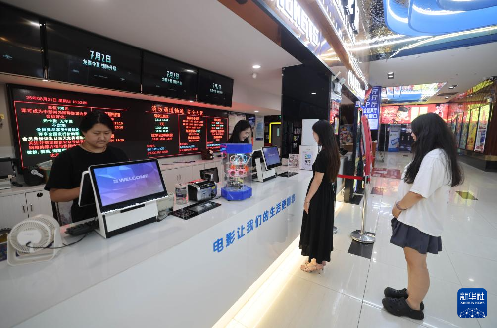 8月31日,在山東省臨沂市沂南縣中影時光影城,觀眾在購票。